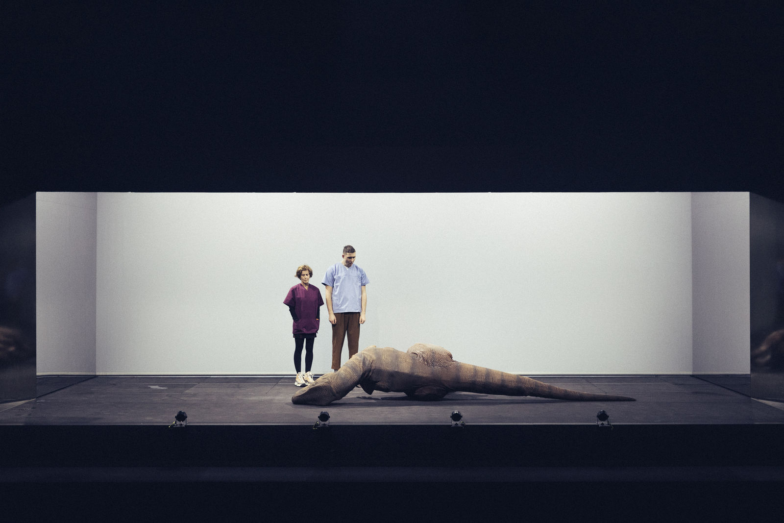 A mountain slides and someone loses their memory. Such is the reduced framework of Max Frisch's story Der Mensch erscheint im Holozän, which was published 40 years ago. Both, the protagonist Herr Geiser and the mountain gently drift into oblivion. The catastrophe lasts and beauty can be found in it. Under an almost tender gaze, the human being and dementia sufferer Mr. Geiser disappears in the narrative - and instead of the earth's mass, a self is slowly eroding here. Alexander Giesche's staging, which oscillates in its aesthetics between the virtual and the analog, between simulation and the all too real, makes the beauty of a catastrophe and its potential for healing palpable. And it poses the question of whether recognizing one's own finiteness might not also facilitate a new beginning.