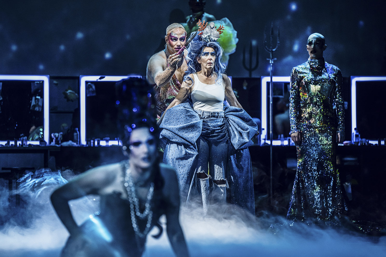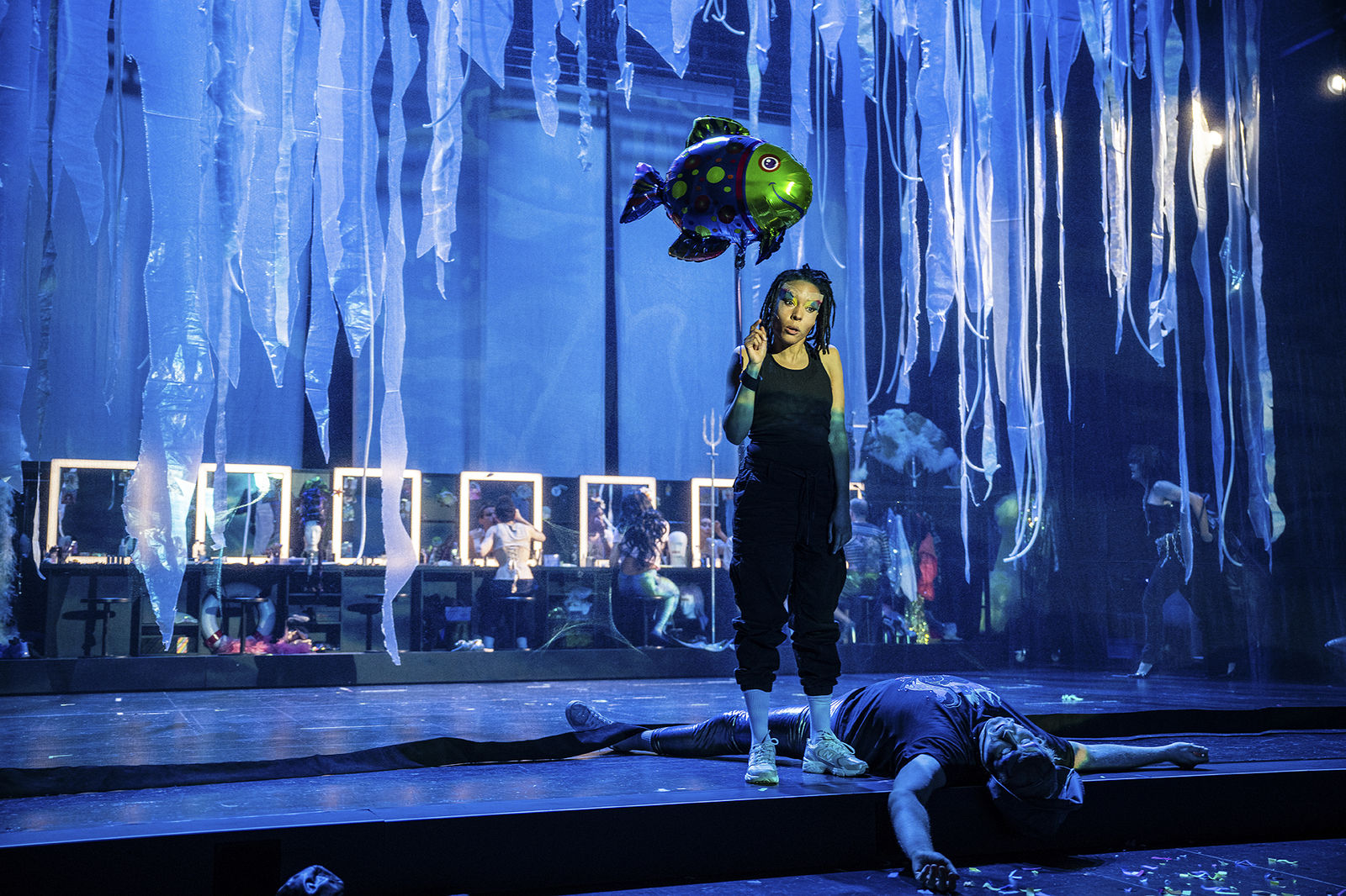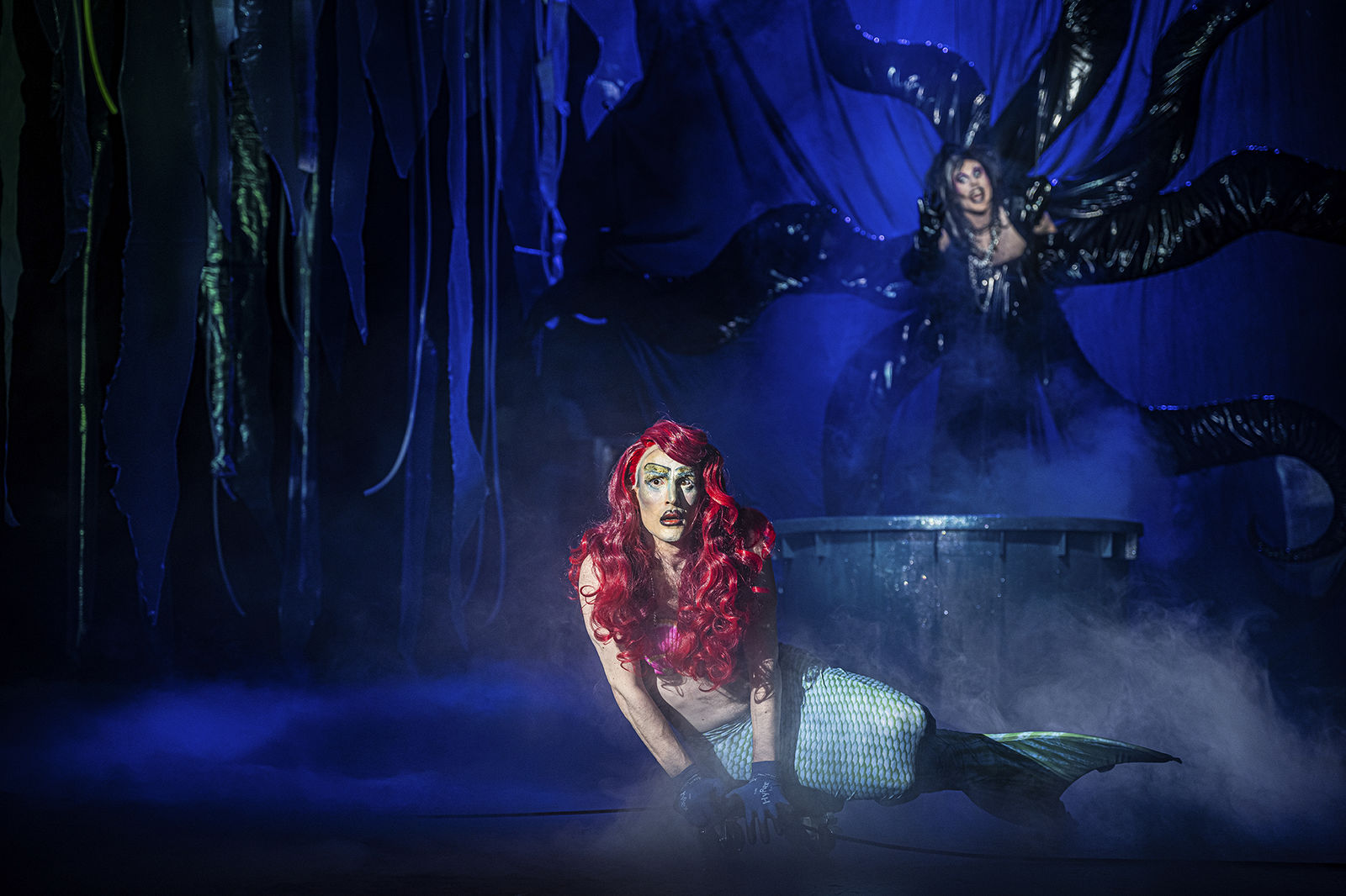 Unter Wasser sehen wir Menschen unscharf, Formen verschwimmen, Körpergrenzen lösen sich auf, alles kommt ins Fliessen. Gleiches passiert im Drag, der Kunstform, die durch extravagante Kostüme und Make-up Geschlechterrollen auflöst, Identitäten in Glitzer und Pailletten taucht und vor allem eine atemberaubende Show bietet. Hans Christian Andersens Märchen zeigt eine ebensolche Transformation: Eine Meerjungfrau verliebt sich in einen Menschen und möchte ihren Fischschwanz loswerden. Das Märchen endet bekanntermassen tragisch. Vielleicht spiegelt es Andersens eigenes Schicksal wider, der sein Leben lang in seinen Jugendfreund verliebt war und diese Liebe nie leben konnte. Und gleichzeitig ist es eine Geschichte so alt wie die Menschheit selbst, von Nymphen, Nixen und Wassergeistern, von Verwandlung und der Befreiung aus der zugeschriebenen Rolle.