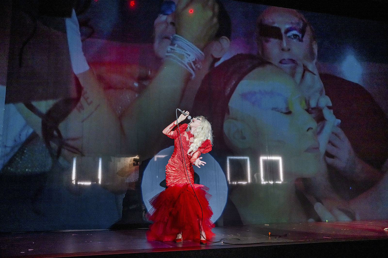 Content Note: Diese Inszenierung thematisiert queerfeindliche Gewalt und beinhaltet eine explizite Szene einer politisch-aktivistisch motivierten Selbstverletzung (Video-Einspieler wird im Stück angekündigt). Sensory Warning: Stroboskop, laute Geräusche/Musik, Nebel.
