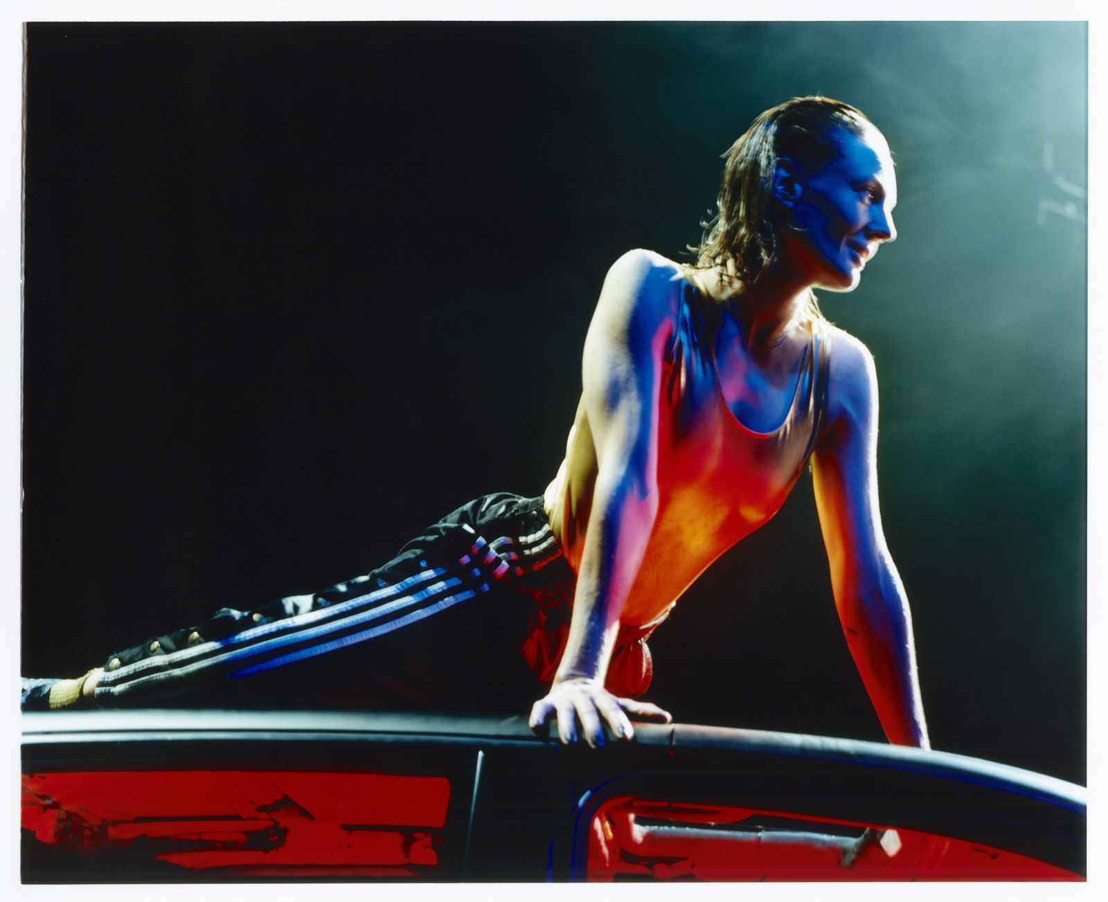 The extremely dense choreographic piece follows a finely branched score, consisting of the performers' interplay, Caterina Barbieri's music, Adrien Michel's sound design, and Yves Godin's lighting.
